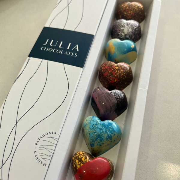 Nuestra caja clásica de 7 bombones en forma de corazón.